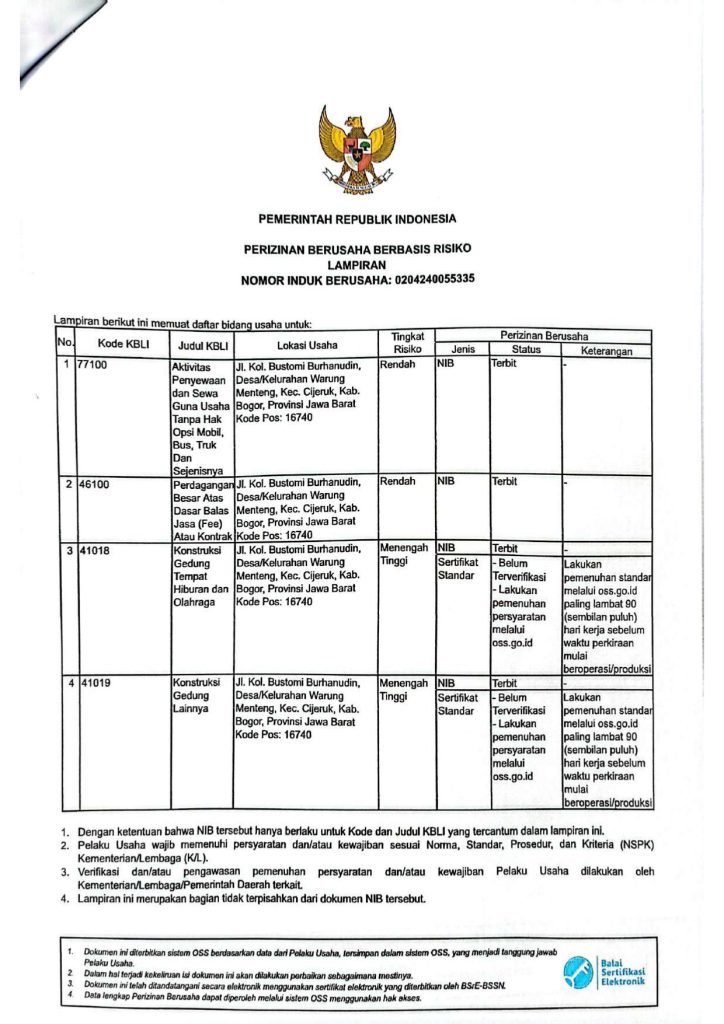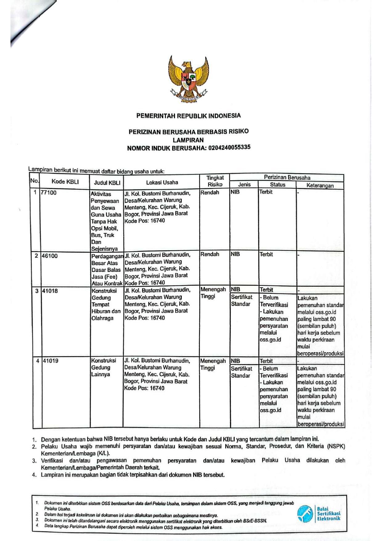 Berisi berbagai dokumen resmi seperti akta perusahaan